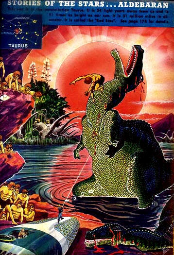 No, no need to thank us, giant yellow aliens with flapper haircuts. It was our pleasure as Earthmen to save you from these marauding reptiles that were threatening your...